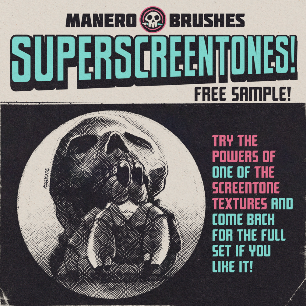 SuperScreentones FREE Sample for Procreate, Photoshop, CSP and MORE!