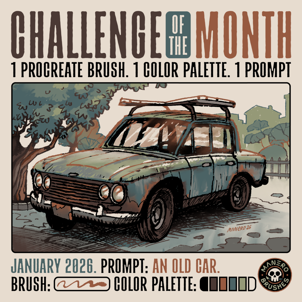 All 2026 monthly freebies will later be included in the paid “Challenge of the Month 2026 Compilation Brush Set for Procreate”, that will be released in January 2027.