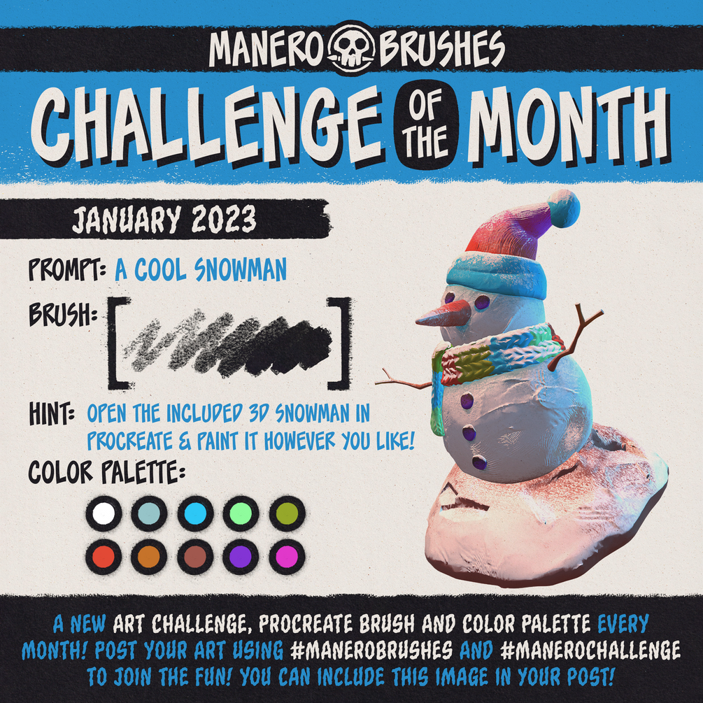🎨Challenge of the Month🖌[January 2023] - An Art Prompt, Procreate Brush and Color Palette Every Month!