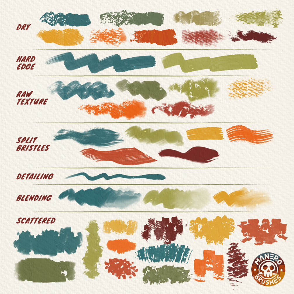 Never tried gouache before? No worries! This set is your fun gateway into exploring everything this medium has to offer, without the mess of physical paint. And if you're a gouache pro artist, you'll find all the tools here to make you feel right at home. I created these brushes to be your new go-to for creating vibrant, textured, and traditional-looking artworks. I hope you like them!