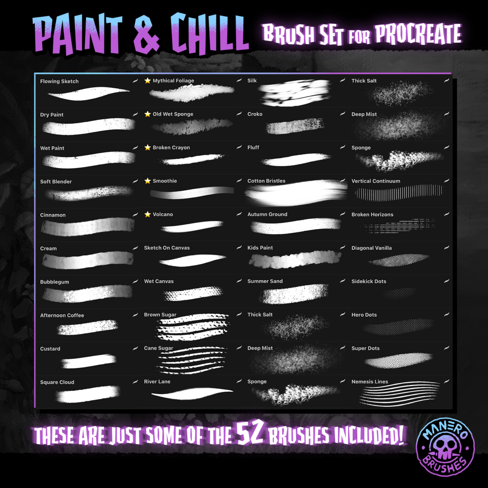 - 08/09/24 → Major All-Improved Manero Brushes update: categorized sets, barrel roll support, 🌈 symbol for Color Dynamics brushes, performance tweaks.