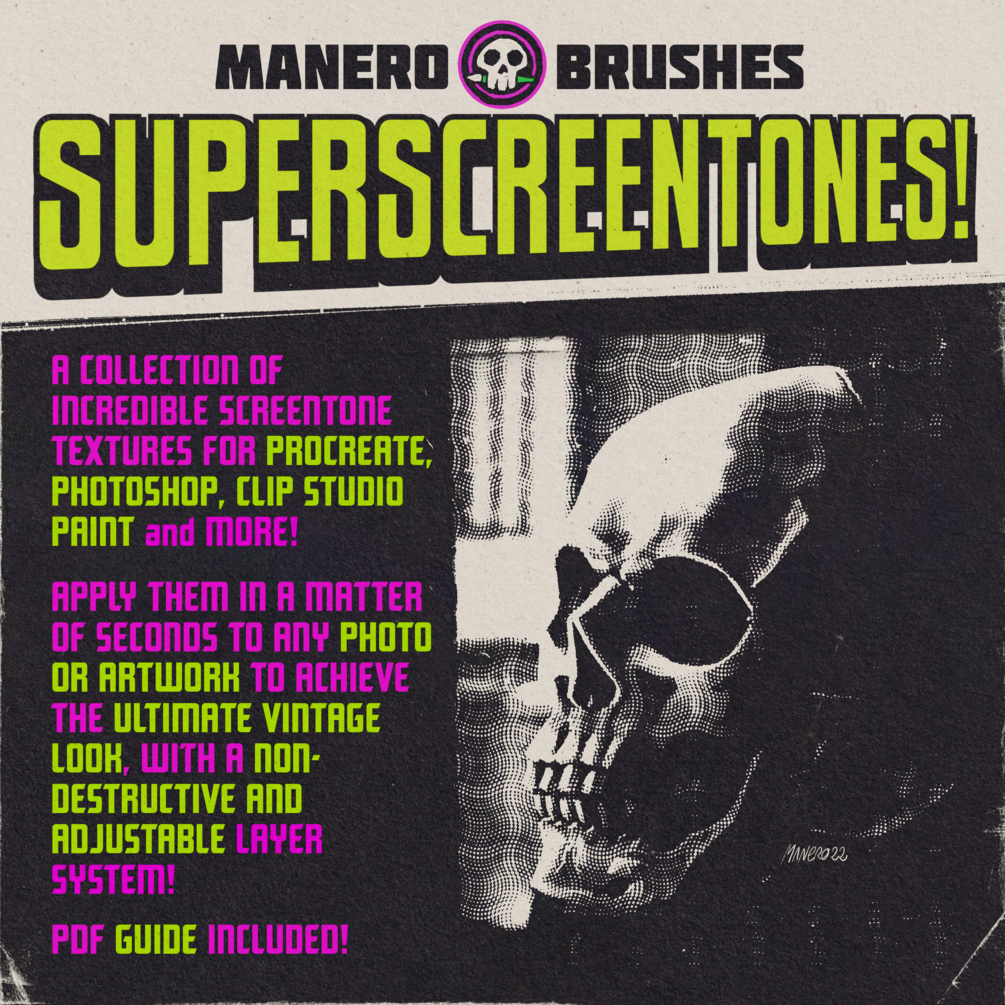 SuperScreentones for Procreate, Photoshop, CSP and more!